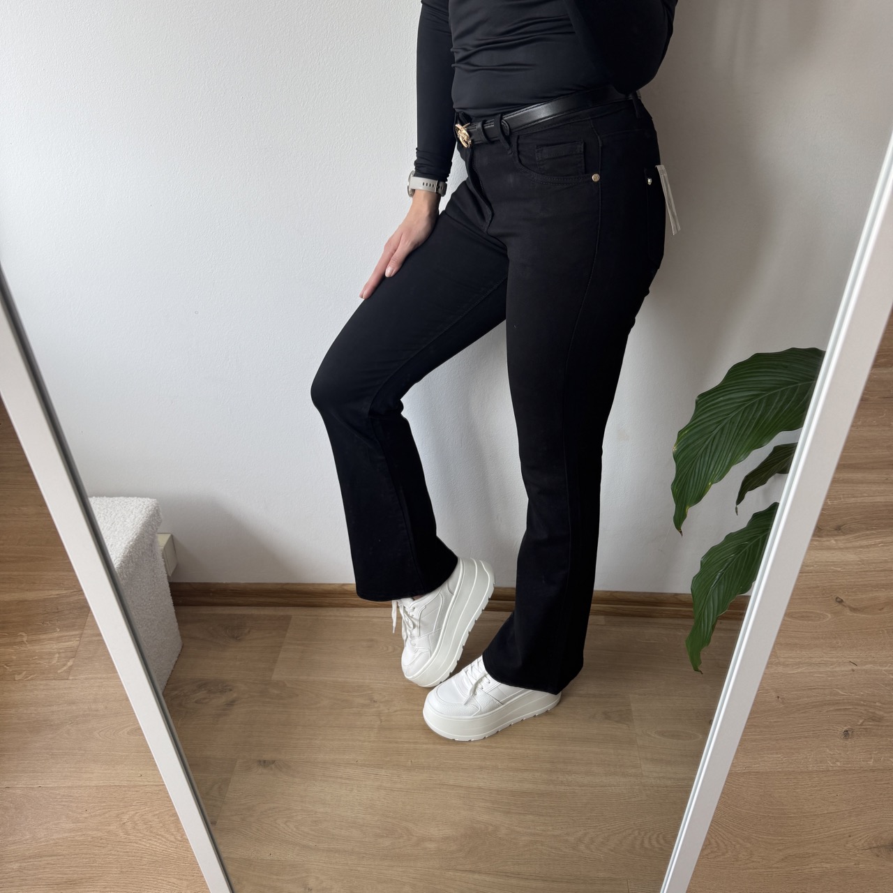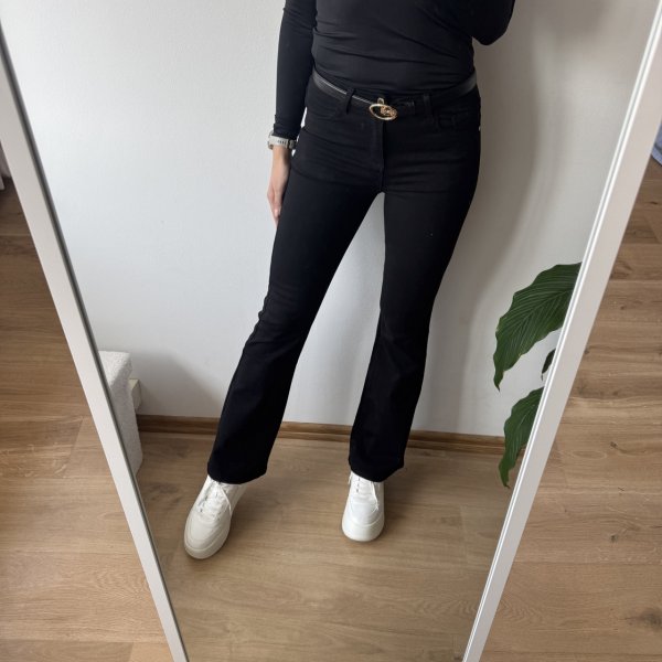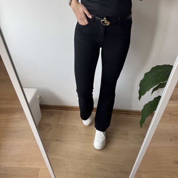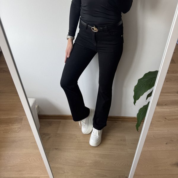 Stylowe czarne dzwony! 🌟 Wysoki stan, miękki i elastyczny denim – idealne dopasowanie i wygoda. Dostępne w rozmiarach XS-XL. Sprawdź teraz! 🔥