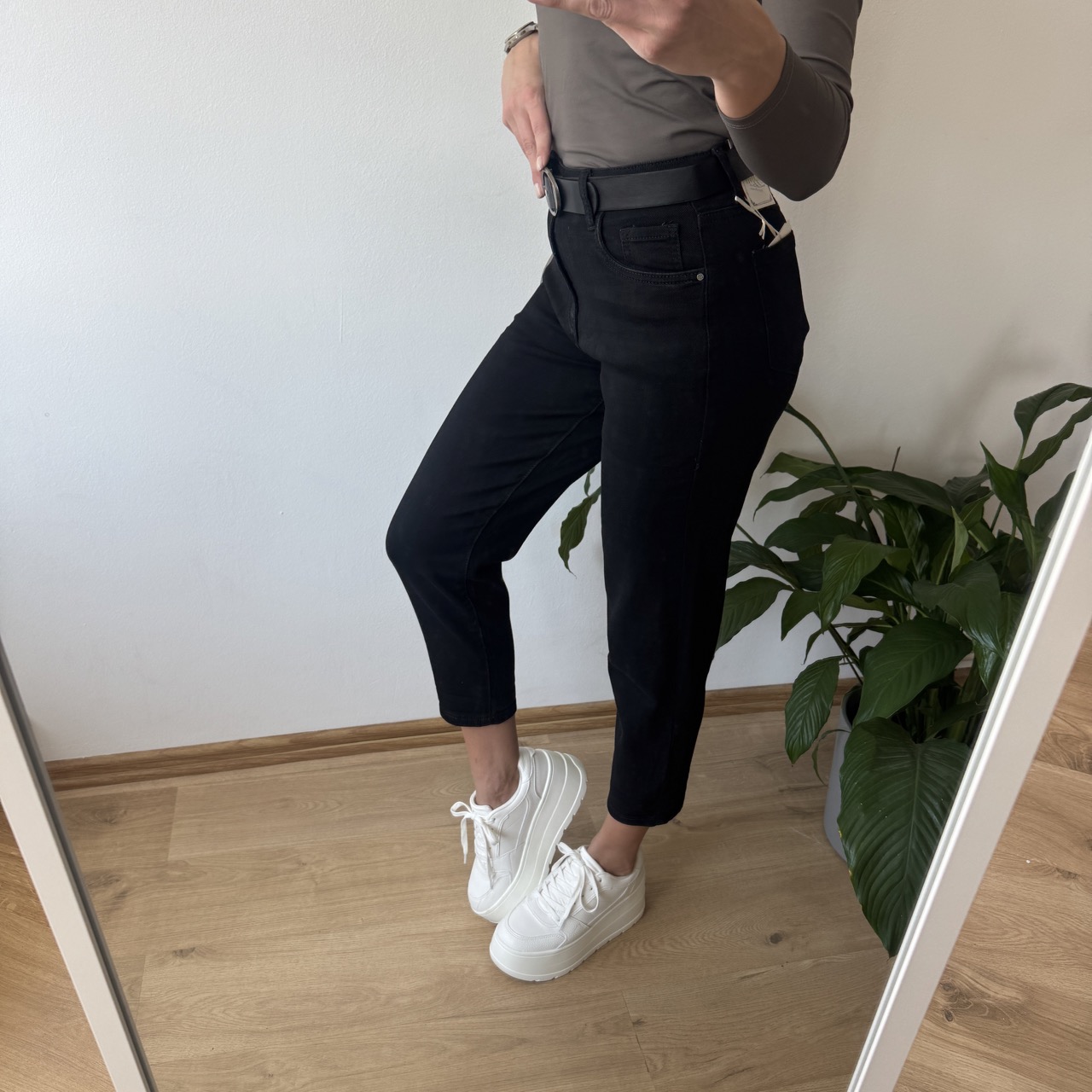 Idealne do sneakersów, crop topu lub oversize’owej bluzy — świetna baza do codziennych, miejskich stylizacji 🖤