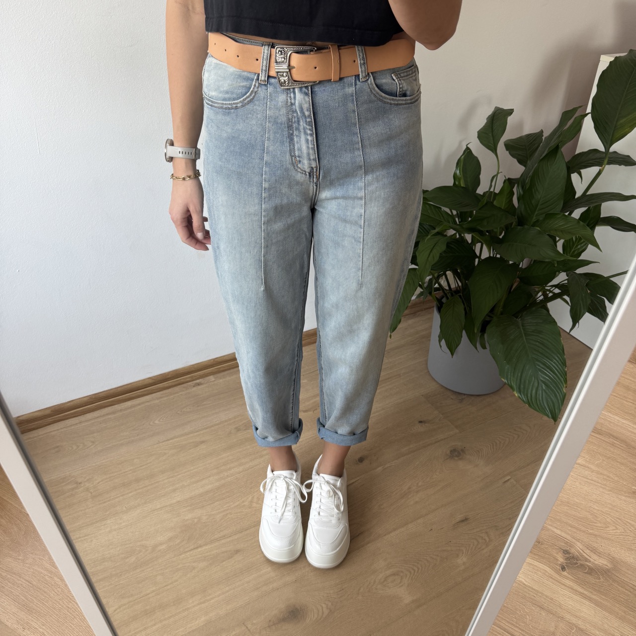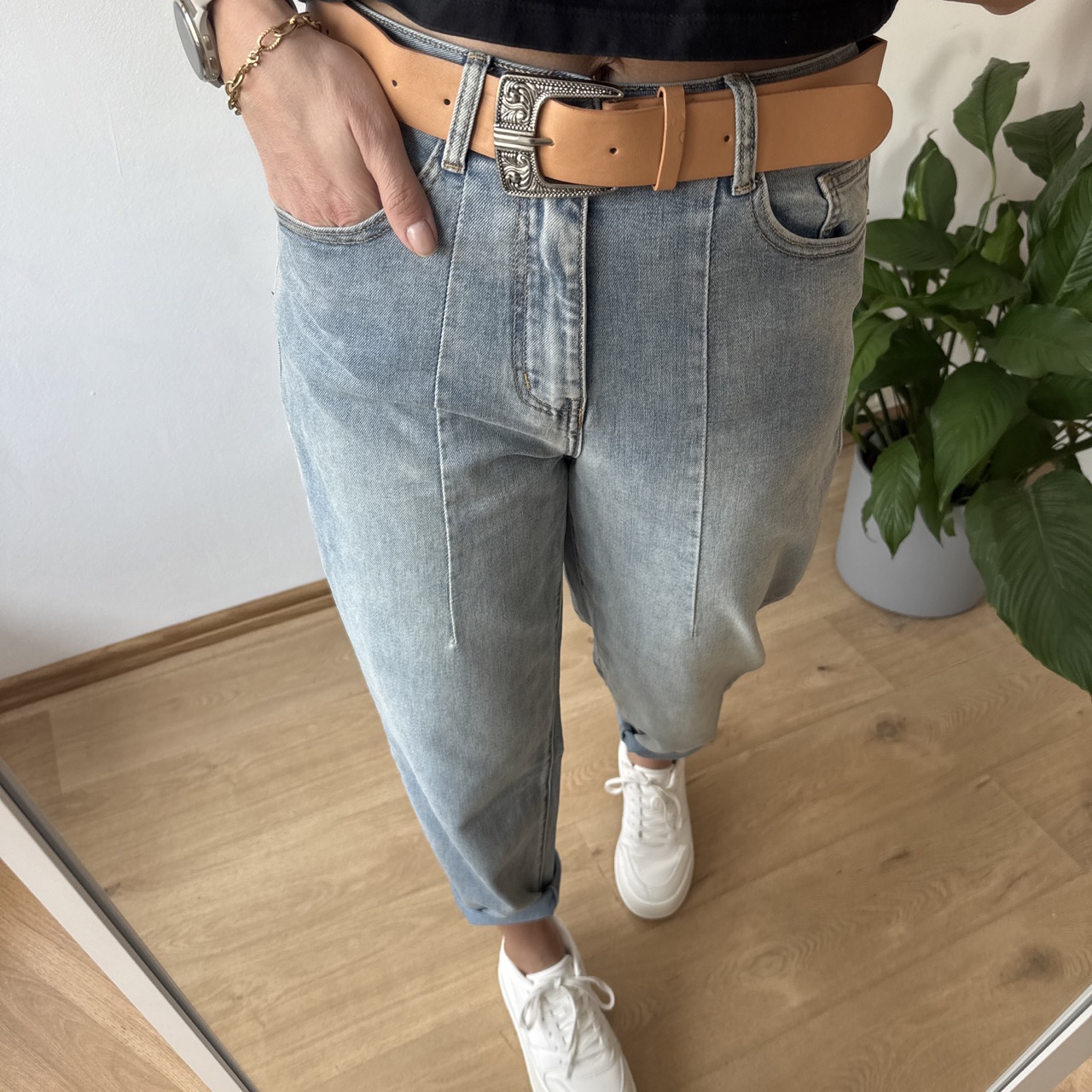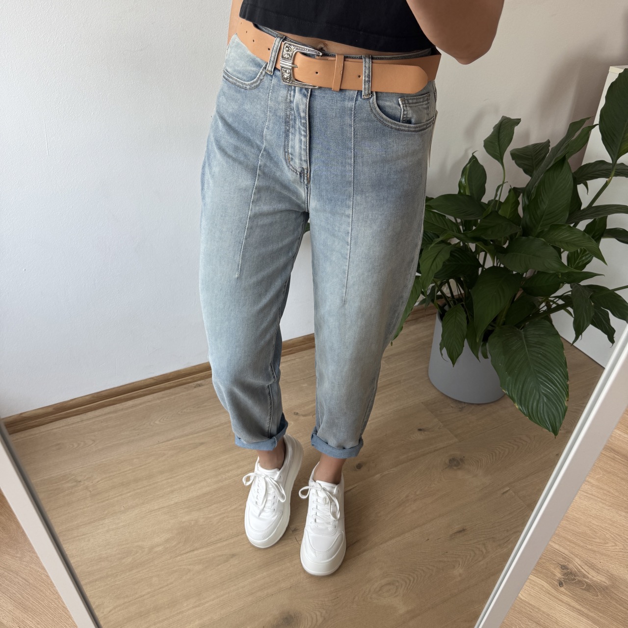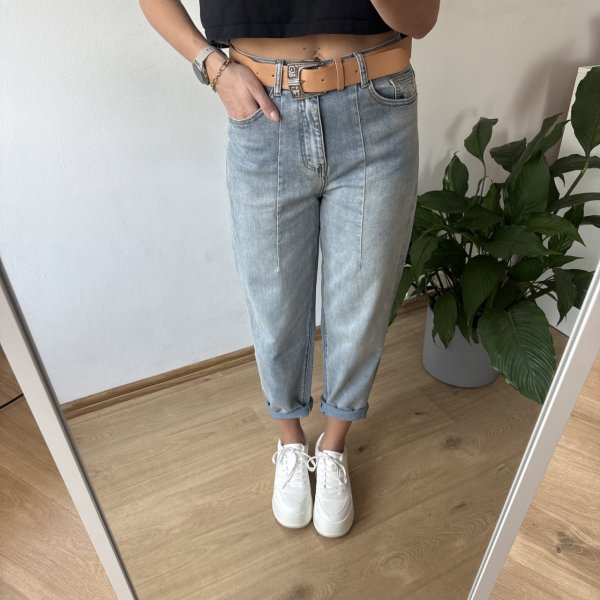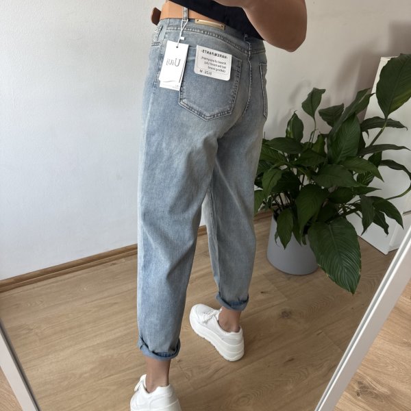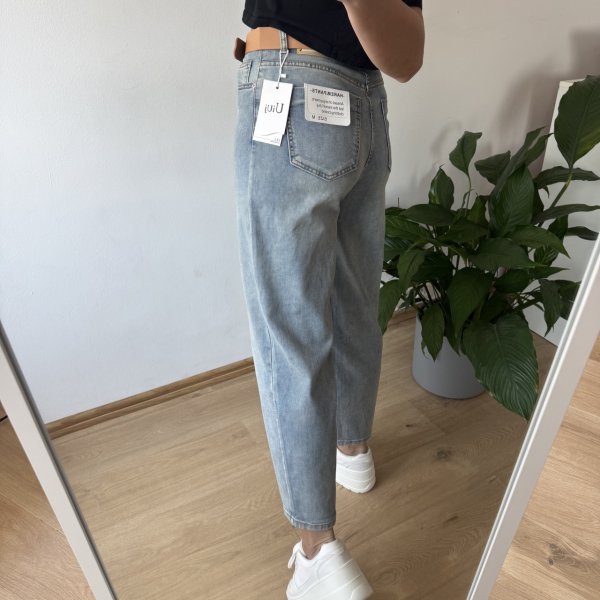 Stylowe jeansy typu balony wykonane z miękkiego, cieńszego denimu, który zapewnia maksymalny komfort noszenia przez cały dzień. Model stylizowany na delikatnie sprany, co nadaje mu swobodnego, vintage’owego charakteru i świetnie wpisuje się w aktualne trendy.