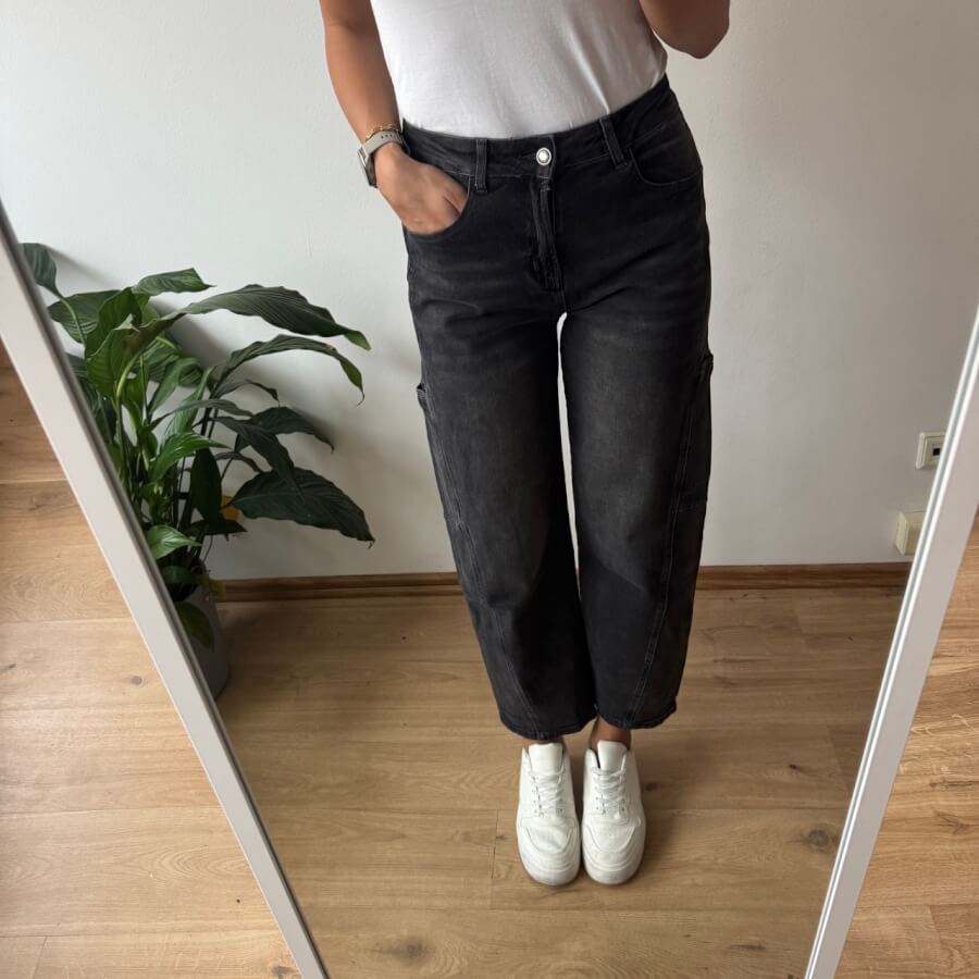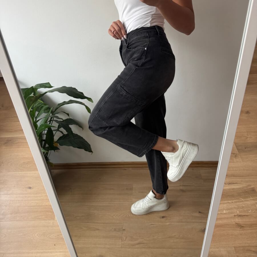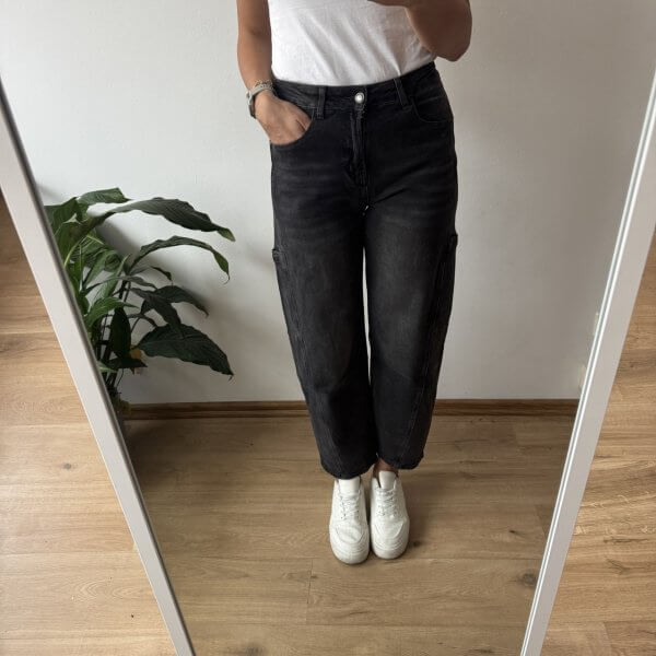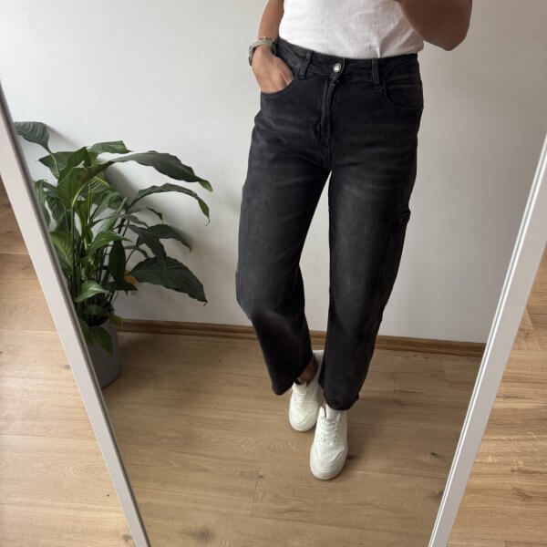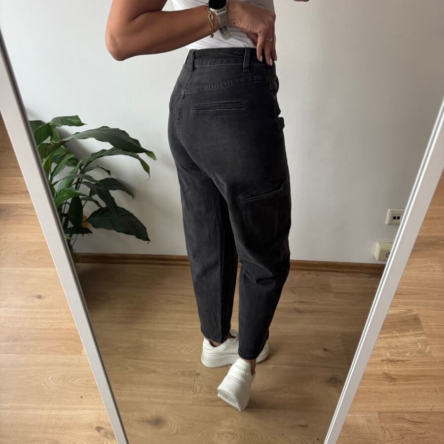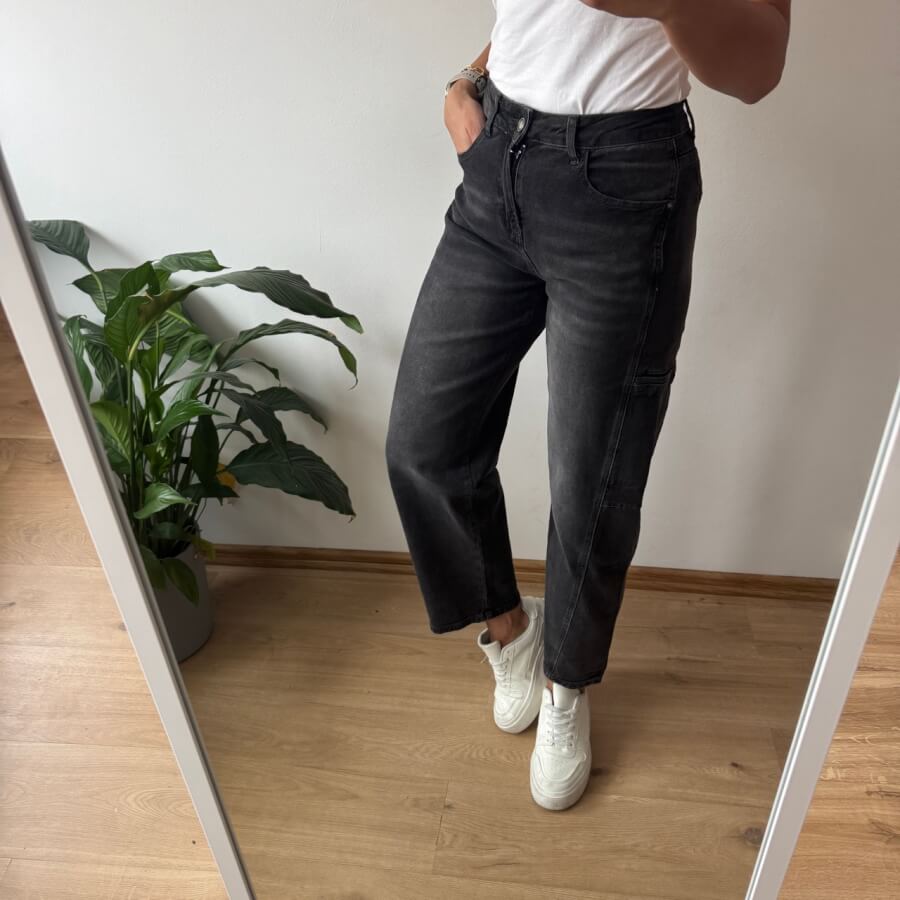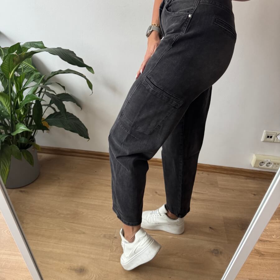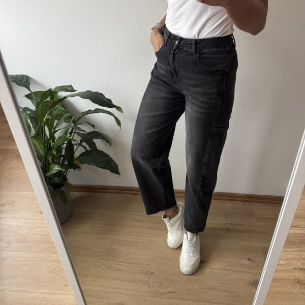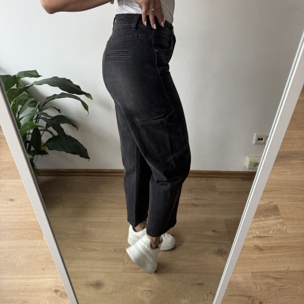 Te grafitowe jeansy o fasonie balon to połączenie wygody i stylu. Wykonane z wysokiej jakości materiału, zapewniają komfort noszenia przez cały dzień. Charakteryzują się grafitowym kolorem, który doskonale komponuje się z różnymi stylizacjami – od casualowych po bardziej eleganckie.
