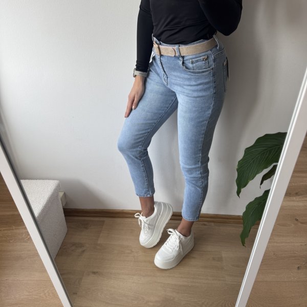 Wysoki stan podkreśla talię, a luźniejszy krój w biodrach nadaje spodniom modny, swobodny charakter. W zestawie znajduje się pasek w stylu boho, który pięknie dopełnia całość i dodaje stylizacji wyjątkowego klimatu.