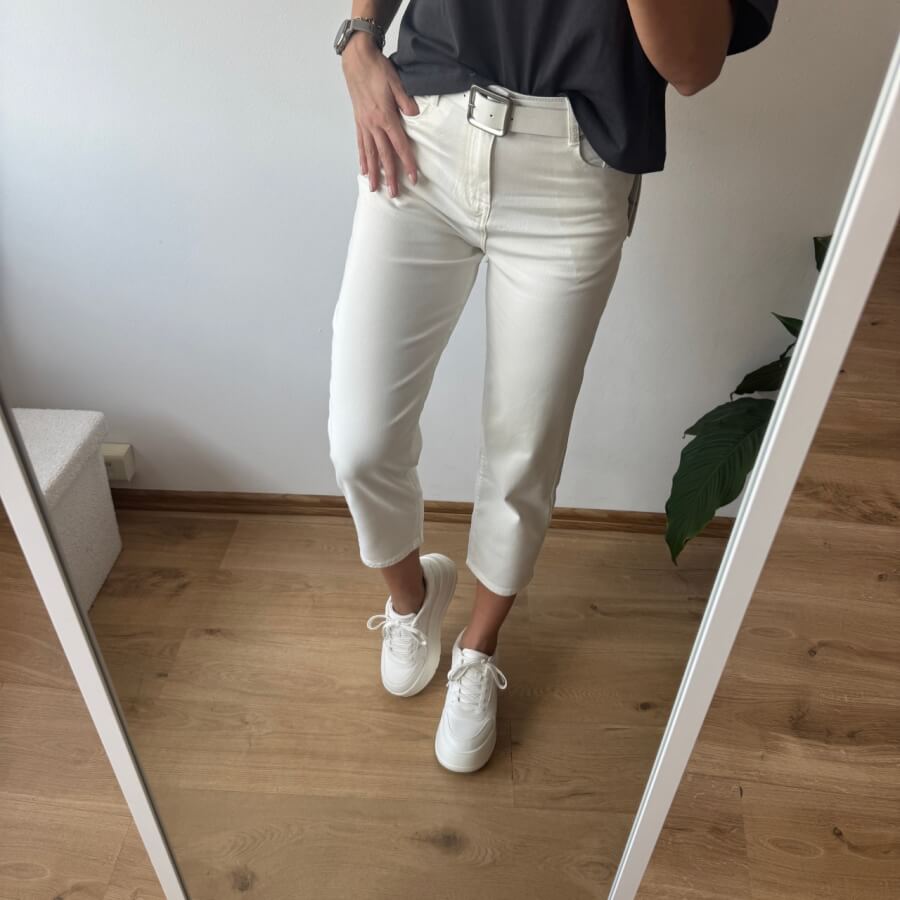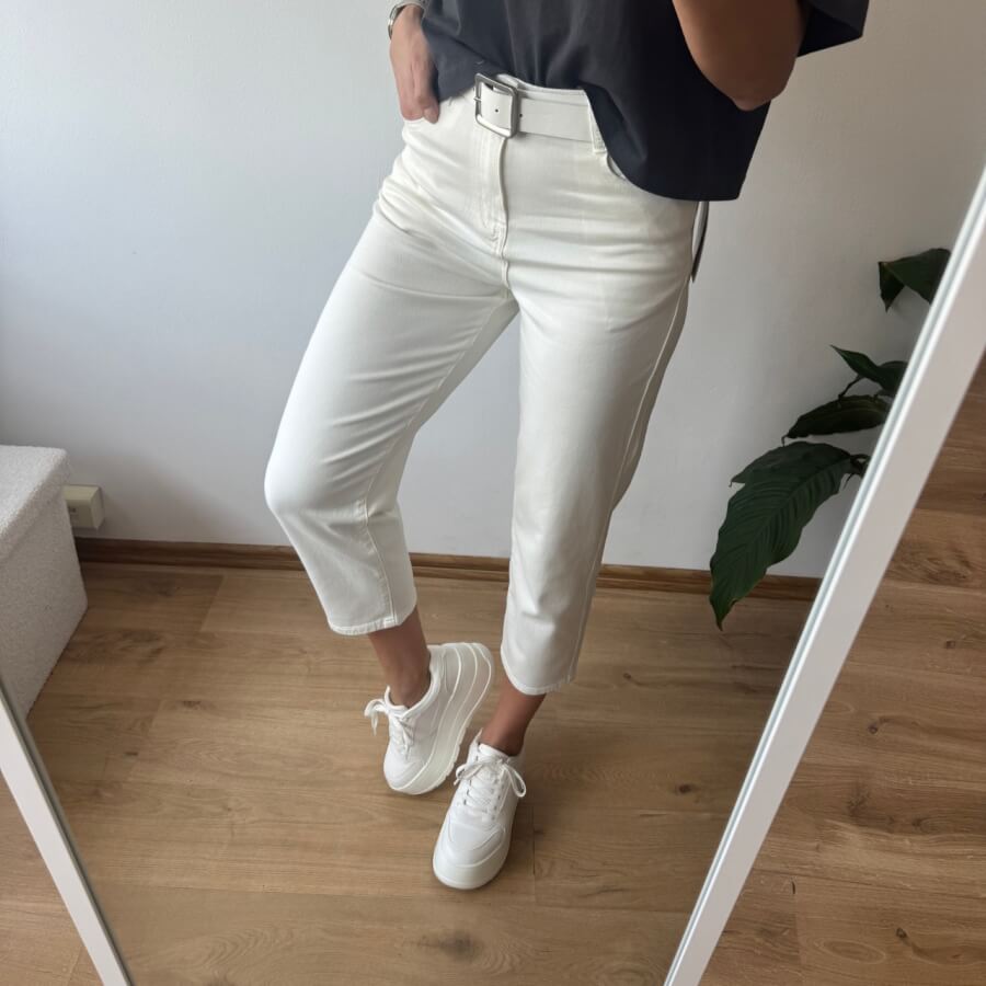 Jeansy baggy 7/8 – białe | Mimidave