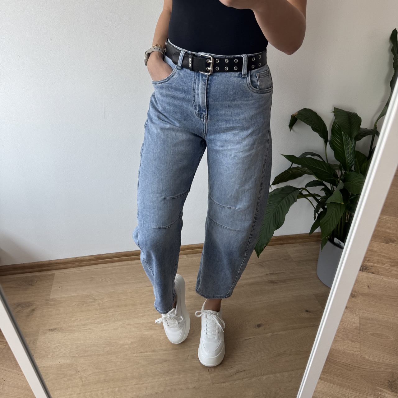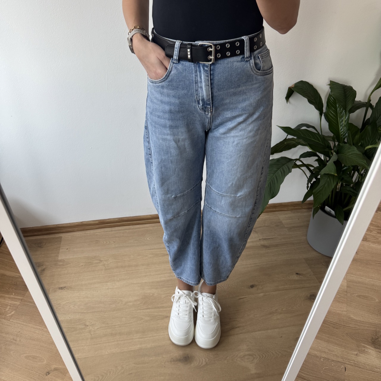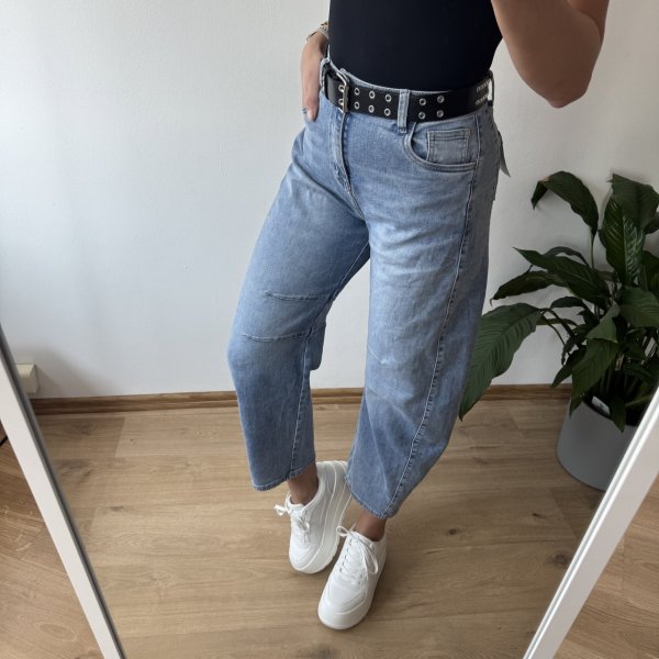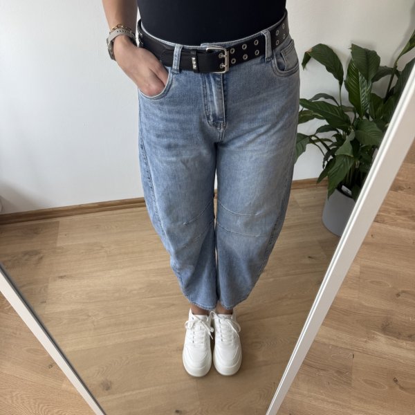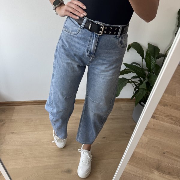 Jeansy M.Sara w pięknym jasnym odcieniu to stylowy fason balloon jeans w nowoczesnym wydaniu. Charakterystyczne, podłużne przeszycia optycznie wysmuklają nogi. Wysoki stan pięknie podkreśla talię, a luźniejsza linia nogawek zapewnia komfort noszenia. Dostępne w rozmiarach XS–XL – idealne dla kobiet ceniących modny design i wygodę. W zestawie ze spodniami znajduje się uroczy duszek, a kolor puszka dobierany jest losowo.