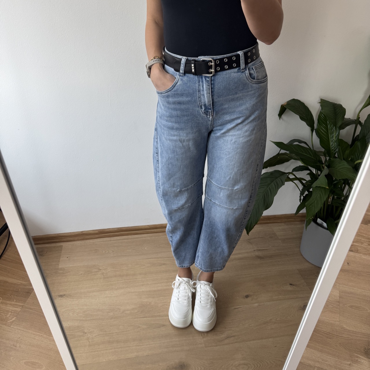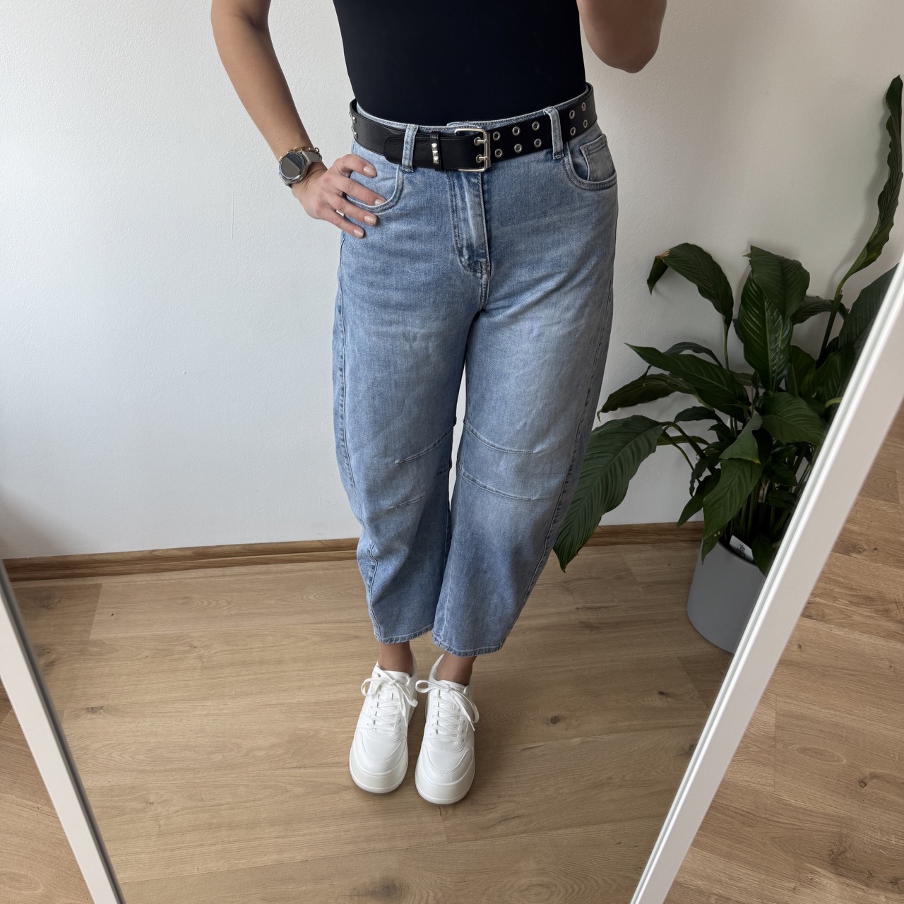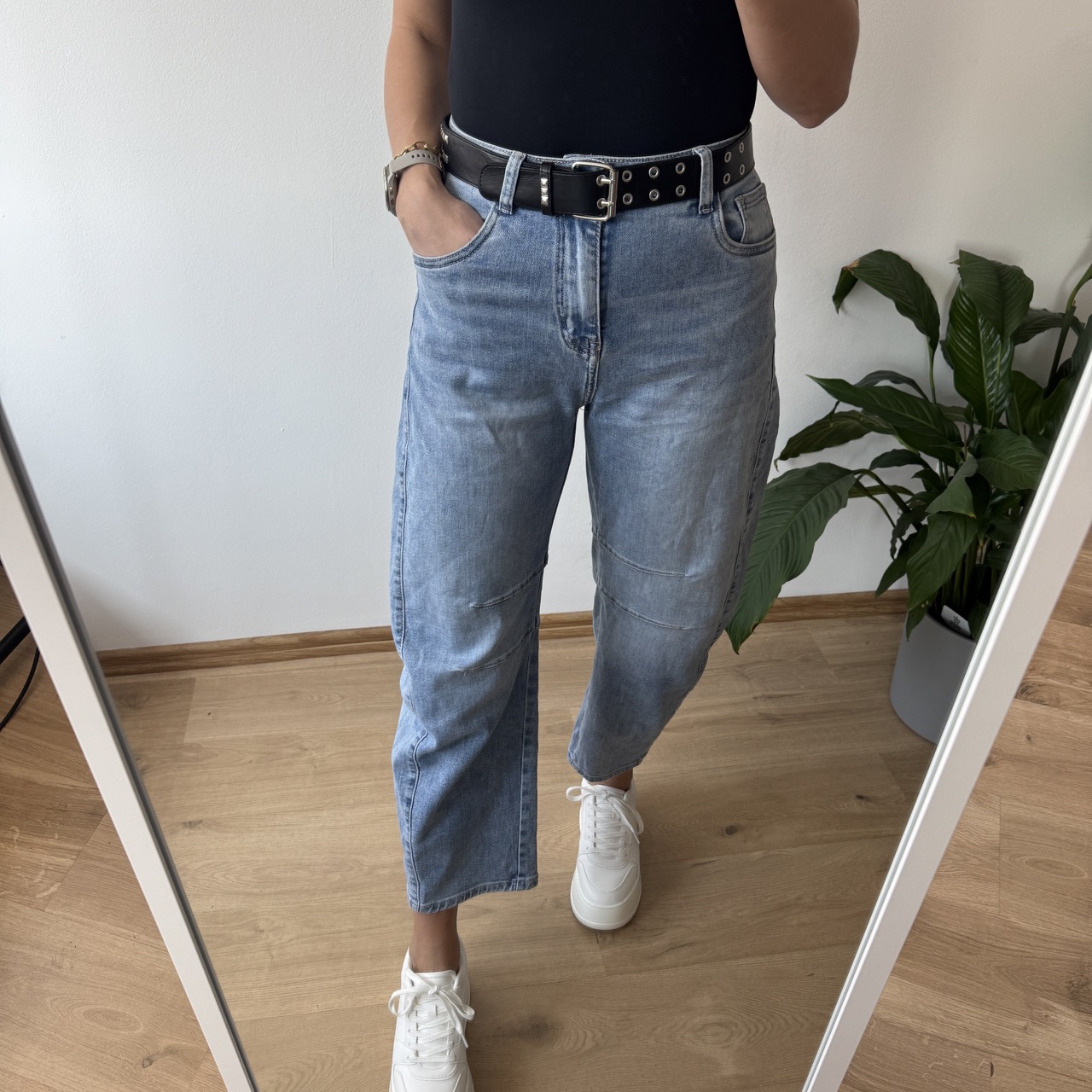 Jeansy M.Sara w pięknym jasnym odcieniu to stylowy fason balloon jeans w nowoczesnym wydaniu. Charakterystyczne, podłużne przeszycia optycznie wysmuklają nogi. Wysoki stan pięknie podkreśla talię, a luźniejsza linia nogawek zapewnia komfort noszenia. Dostępne w rozmiarach XS–XL – idealne dla kobiet ceniących modny design i wygodę. W zestawie ze spodniami znajduje się uroczy duszek, a kolor puszka dobierany jest losowo.
